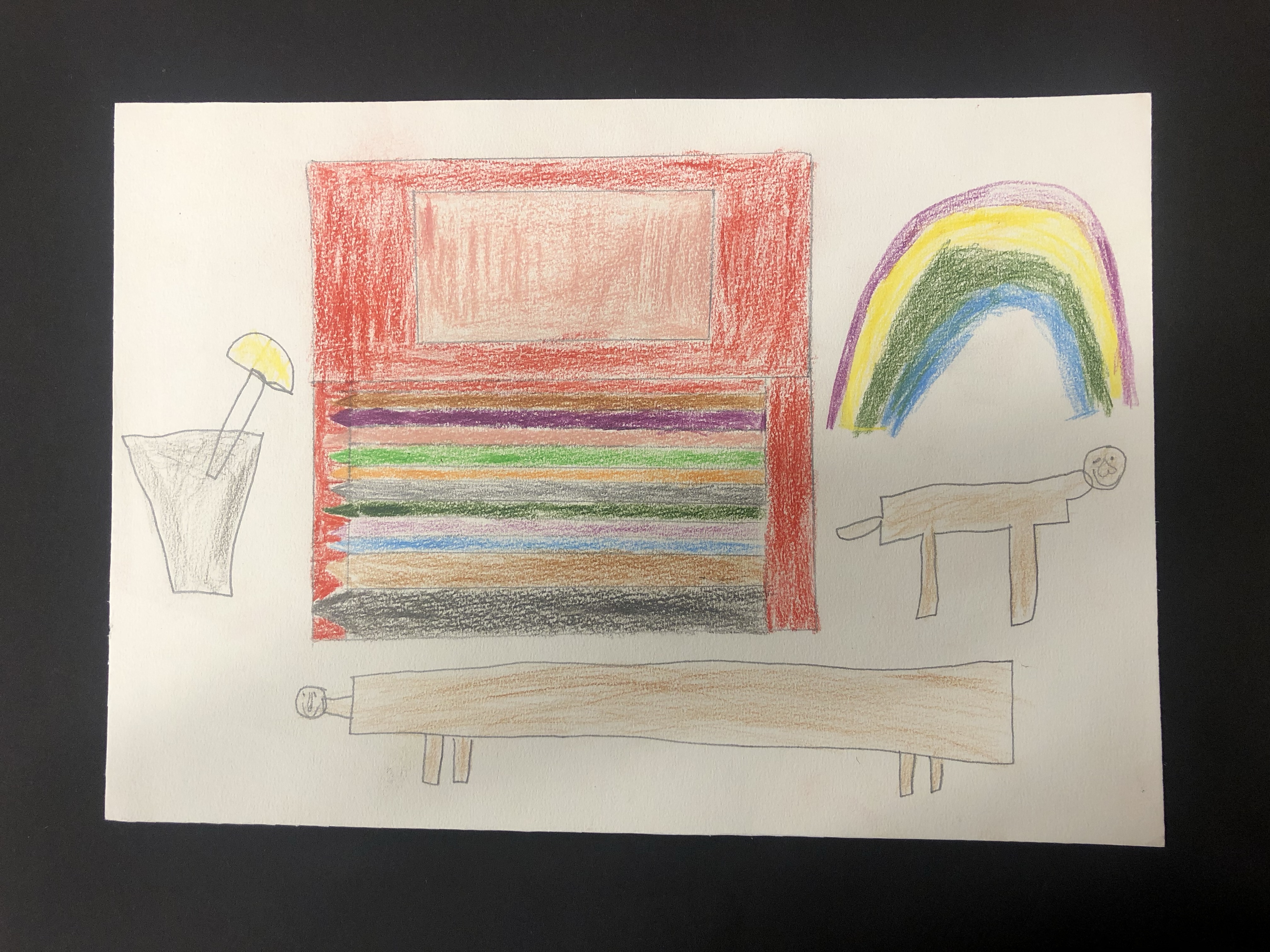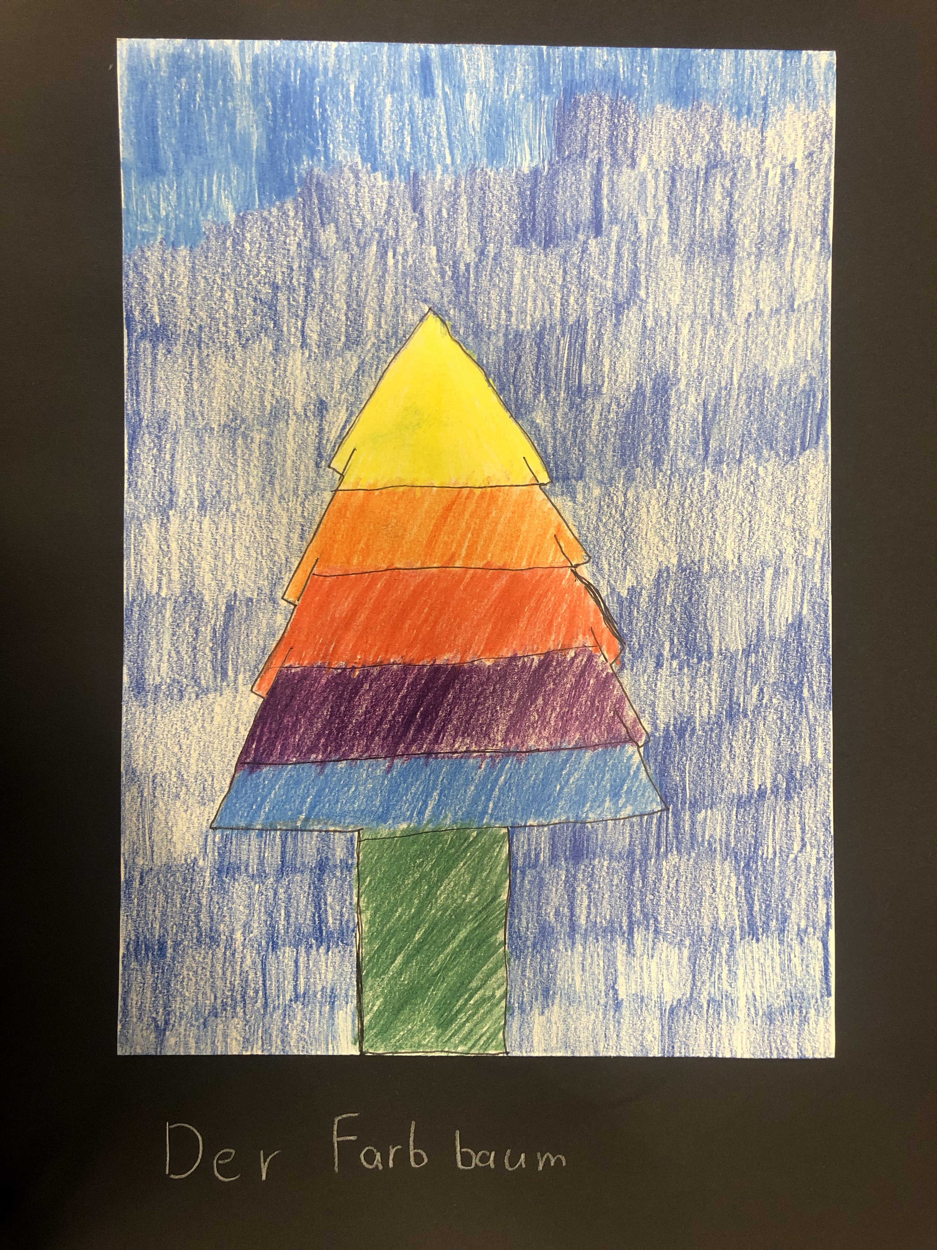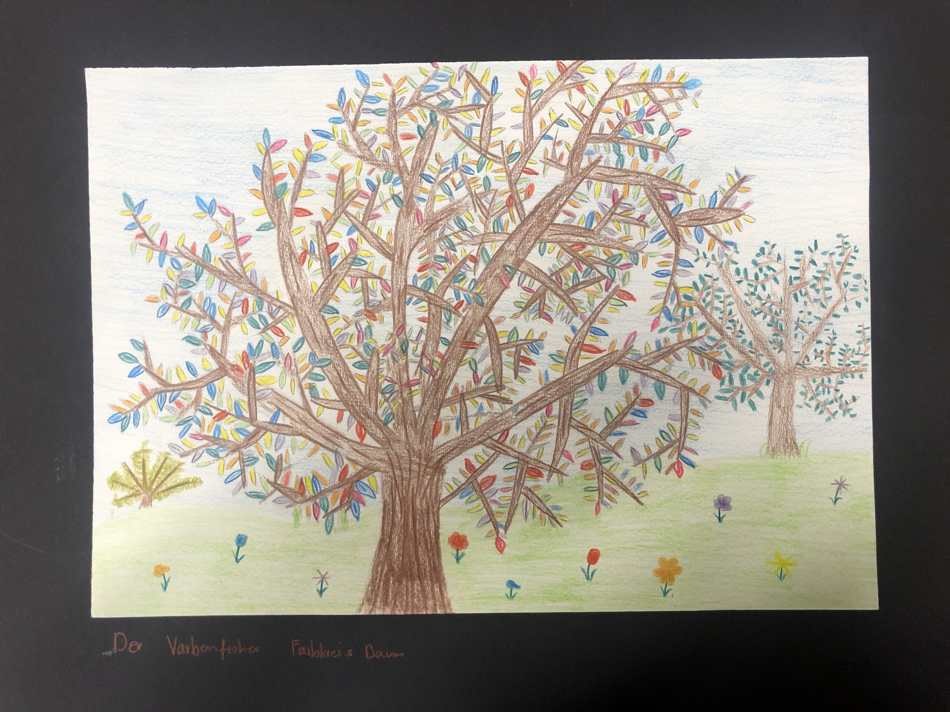 Der Farbkreis wurde behandelt, worauf die Schüler:innen ein Bild nach Wahl mit Farbstiften gestalten. Die Farben des Farbkreises müssen irgendwo im Bild wiederzufinden sein.